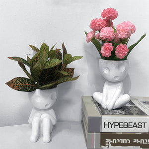 Nordic Creative Cute Tree Man Pot Ceramic Little People Body Flower Pots Home Office Ornaments Cartoon Succulent Plants Potted